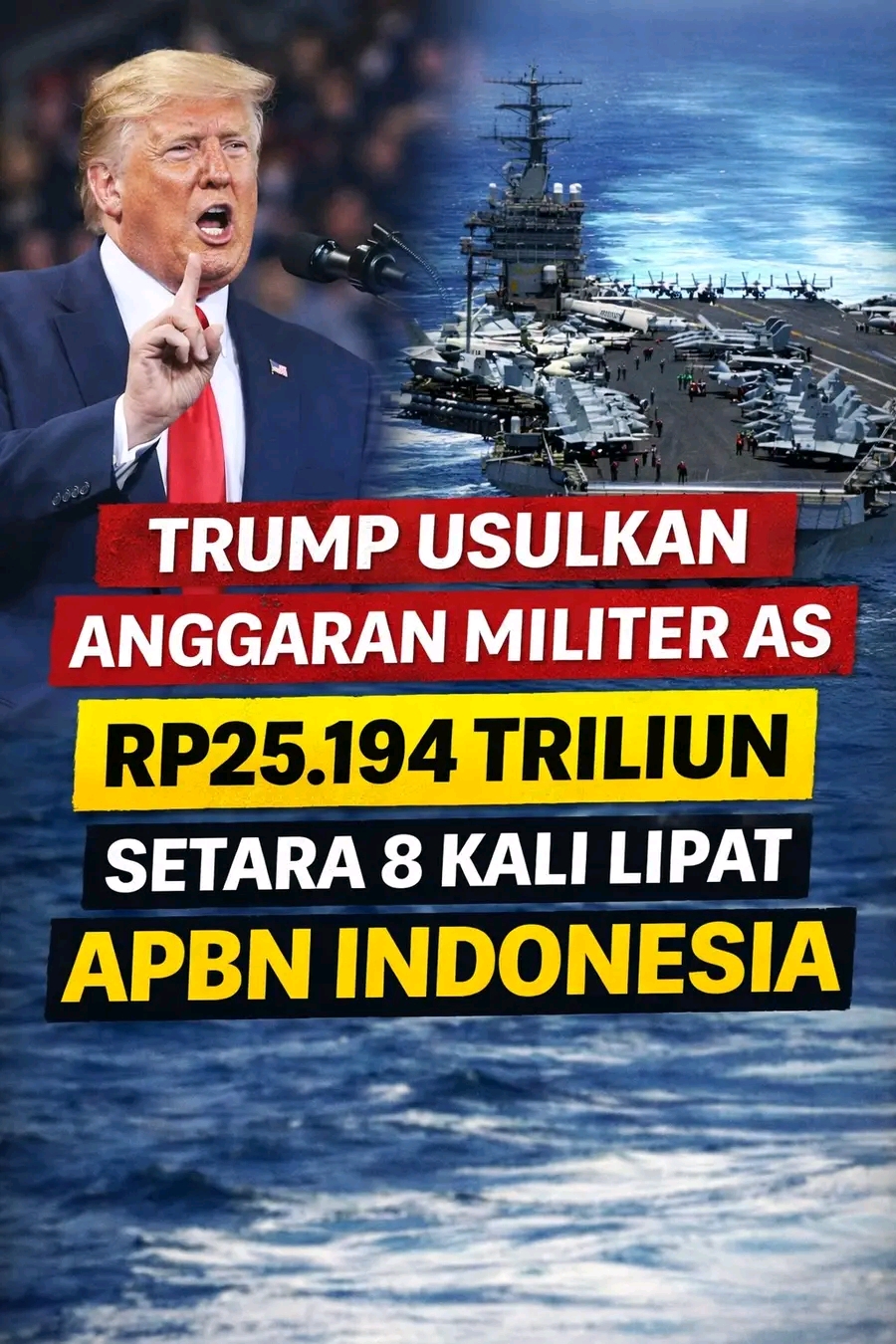 FYP NEWS — Anggaran militer Amerika Serikat kembali menjadi sorotan global setelah usulan belanja pertahanan Negeri Paman Sam mencapai sekitar Rp25.194 triliun. Nilai tersebut